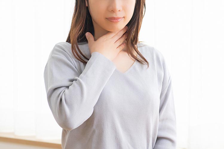 また、甲状腺が腫れて首の前がふくらんだように感じる場合もあります。